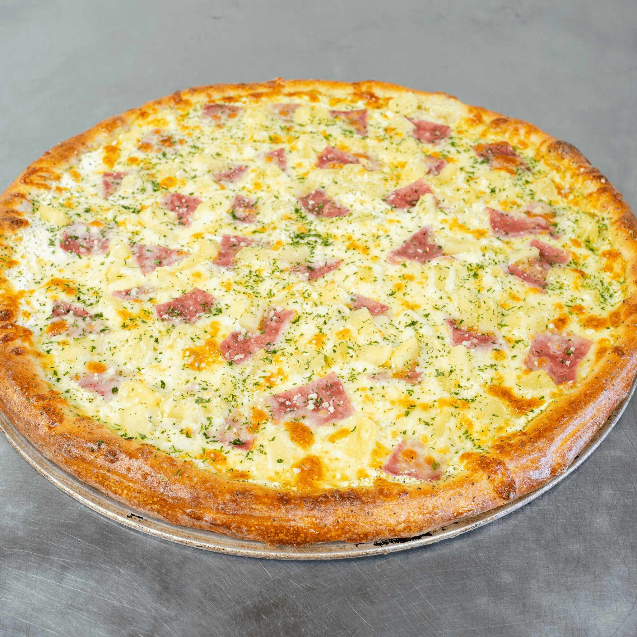 Ricotta & garlic sauce topped with ham, pineapple & mozzarella